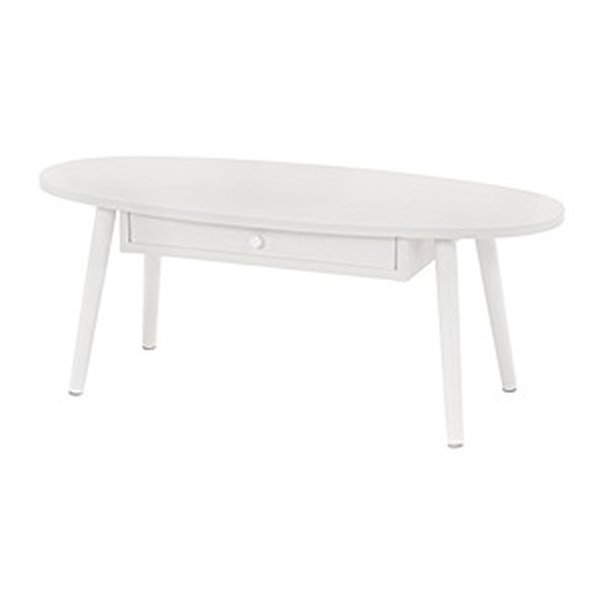 両側から取り出せる引出し付きテーブル。熱や傷に強いUV塗装仕上げ。幅95cm