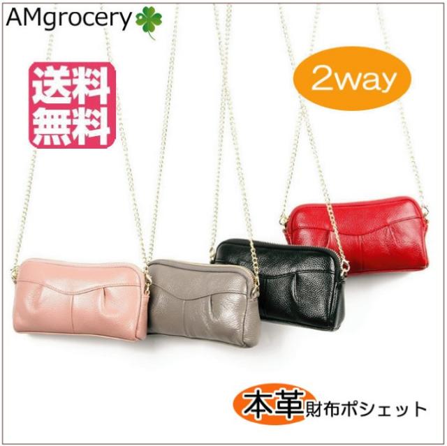 送料無料 重さ僅か140gの超〜軽量 本革お財布ポシェット クラッチバック ショルダーバッグ2way | ||||||||