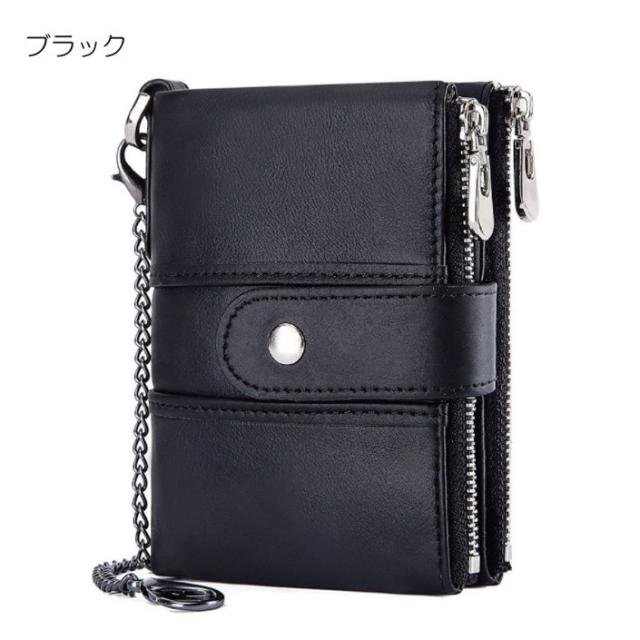 二つ折り財布 メンズ 軽量 本革 スキミング防止 小銭入れ 軽い財布 大容量 入学祝 コンパクト(ブラック)wallet211008