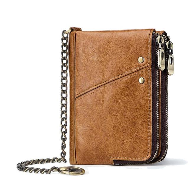 財布 二つ折りメンズ 本革 スキミング防止 チェーン付 大容量 L字ファスナー 父の日 春財布(キャメル)mens190724