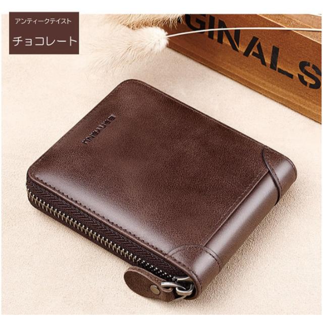 財布 メンズ スキミング防止 ミニ財布 二つ折り 本革 軽量 コンパクトレザー 父の日 春財布 プレゼント 大容量(チョコレート)menswalt191016