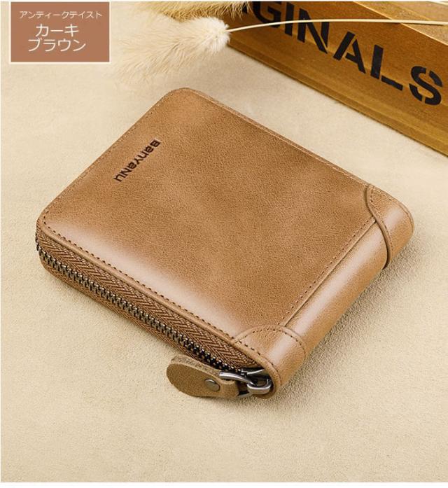 財布 メンズ スキミング防止 ミニ財布 二つ折り 本革 軽量 コンパクト レザー 父の日 春財布 プレゼント 大容量(カーキ)menswalt191016