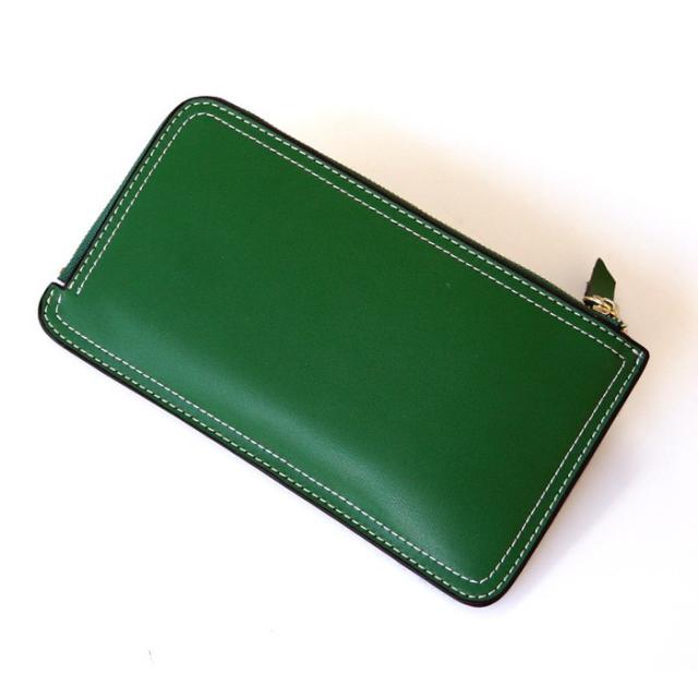 長財布 レディース 本革 父の日 春財布 プレゼント L字ファスナー 薄い 緑 縁 みどり(ボトルグリーン)sai50121801