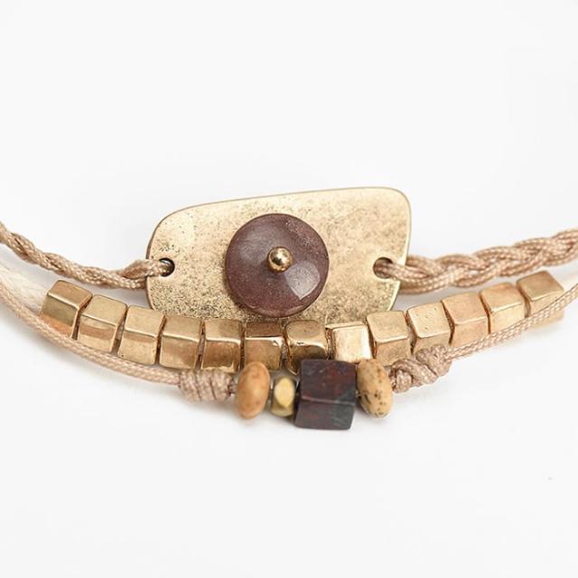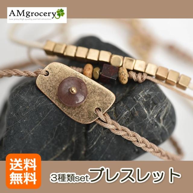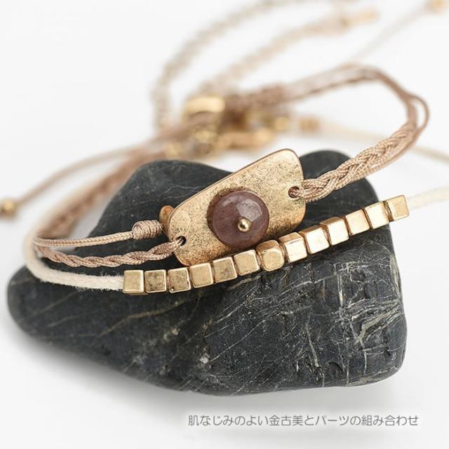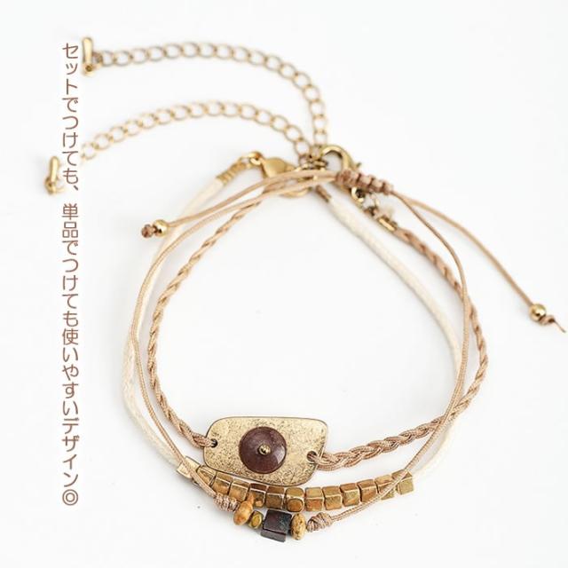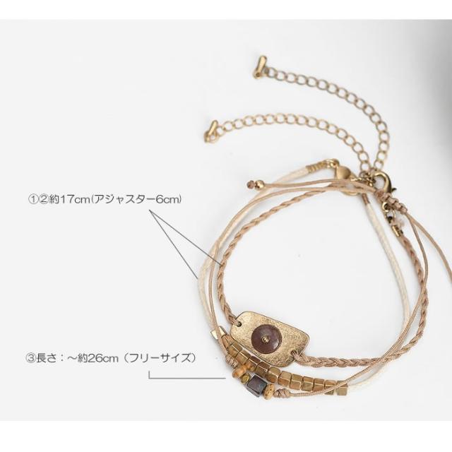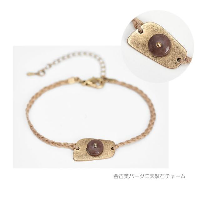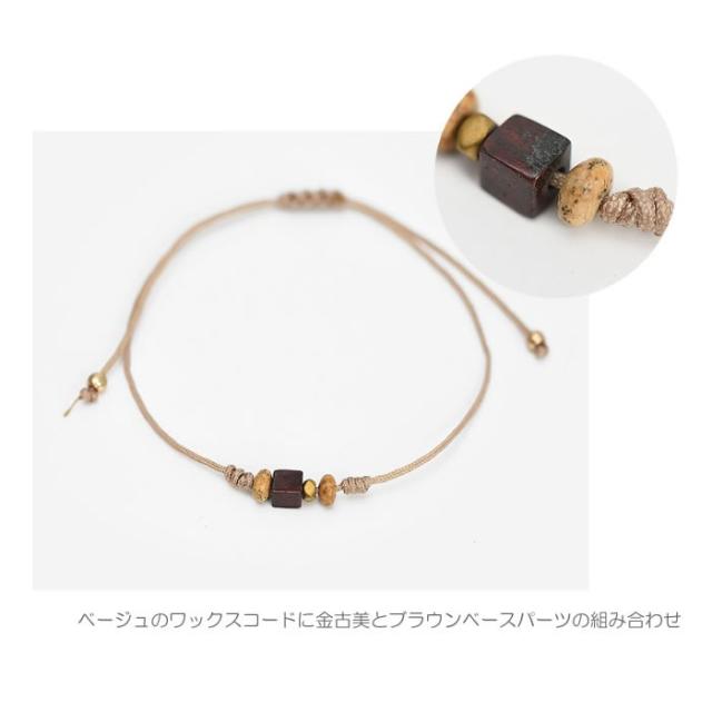 ブレスレット セット アンクレット ストーン パーツ 金古美 シンプル アクセサリー ブラウン ワックスコード 送料無料 | ||||||||||