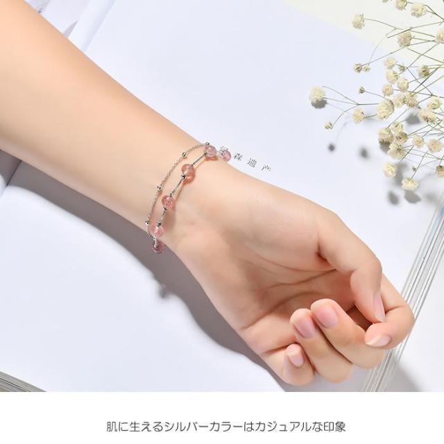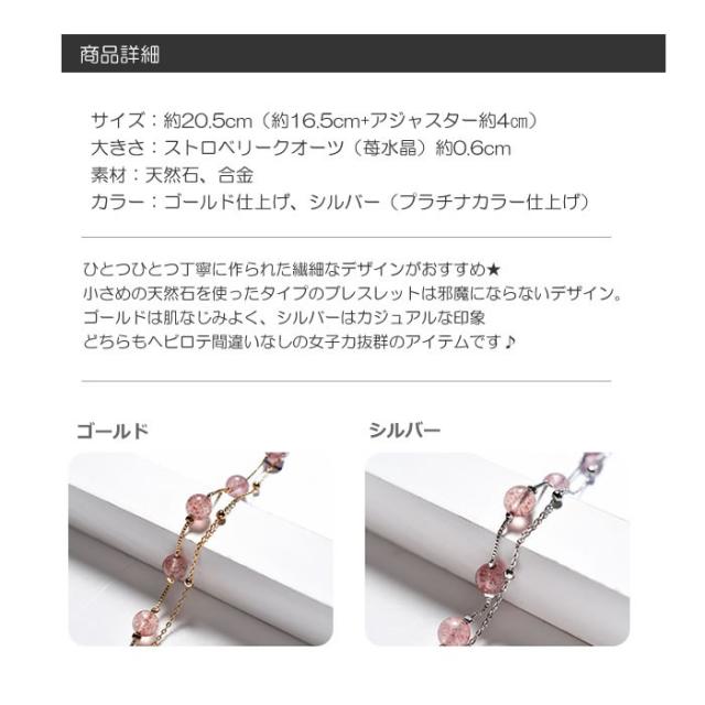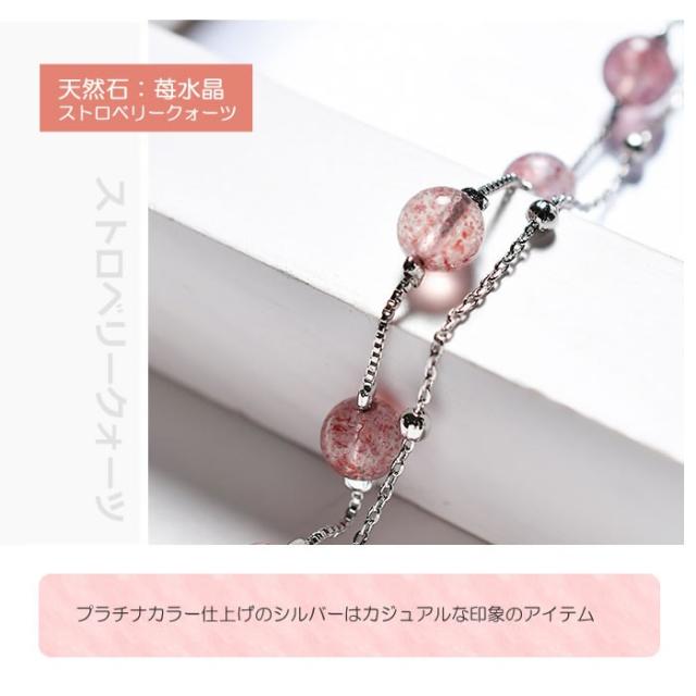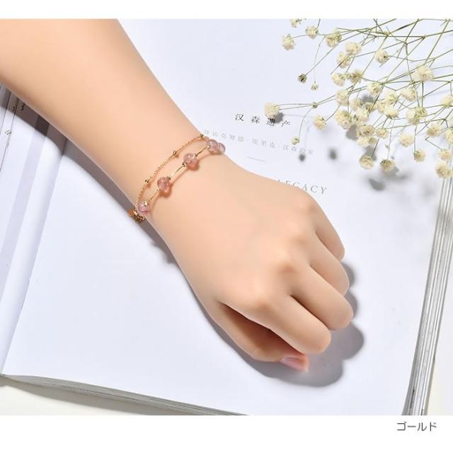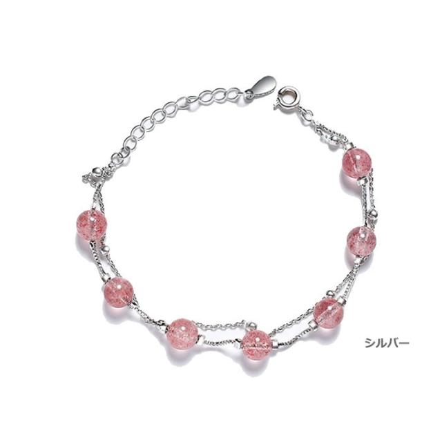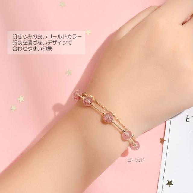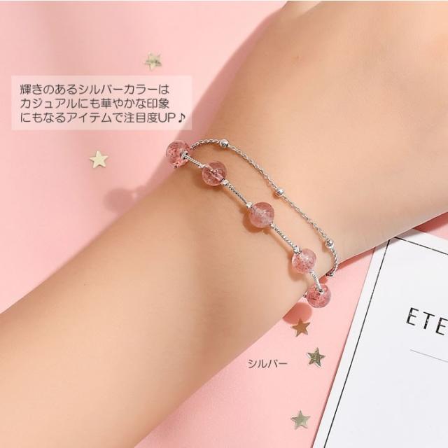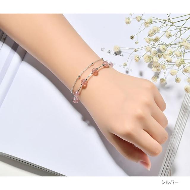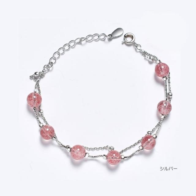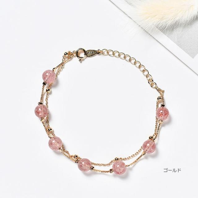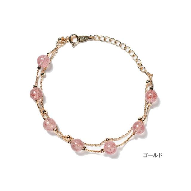 ブレスレット 二連 天然石 ストロベリークオーツ 苺水晶 アクセサリー ゴールド シルバー パワーストーン 送料無料 | ||||