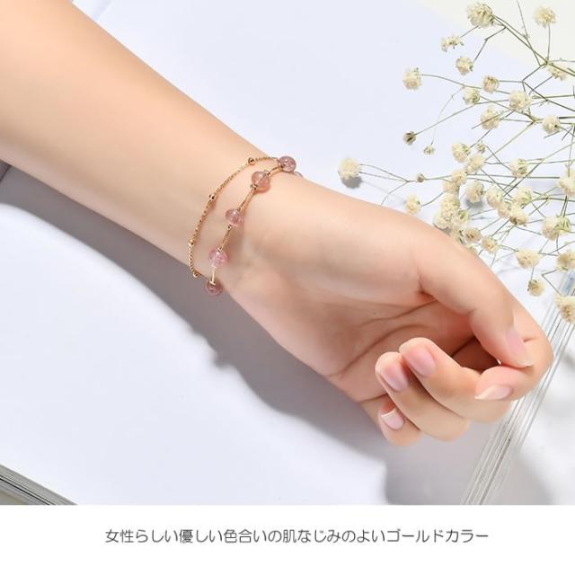 ブレスレット 二連 天然石 ストロベリークオーツ 苺水晶 アクセサリー ゴールド シルバー パワーストーン 送料無料 父の日 プレゼント 2022 プレゼント