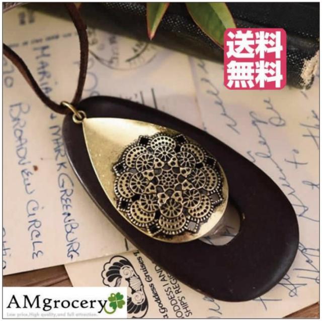 レディース ロングネックレス アジア古風の雰囲気が素敵な水滴模様の透かし彫りペンダント | ||||||||