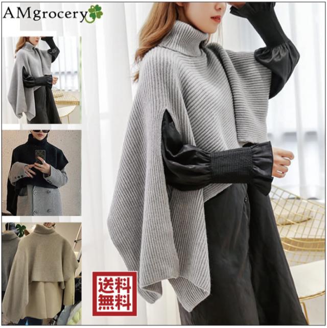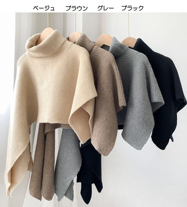 ポンチョマフラー アシンメトリーニット レディース レイヤードニットトップス 重ね着 羽織 レイヤードニットトップス ショートコート 厚手 秋冬 新作