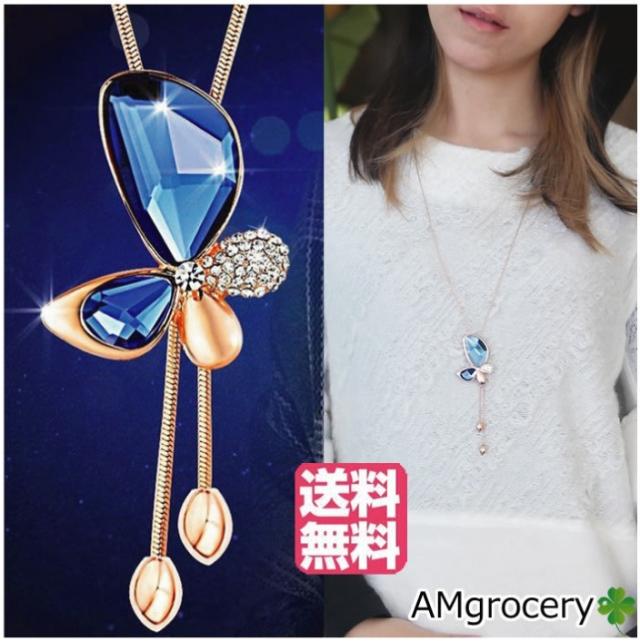ネックレス アクセサリー 春夏 父の日 プレゼント 2022 人気 プレゼント ブルー 蝶 バタフライ モチーフ ラインストーン ジュエリー ペンダント
