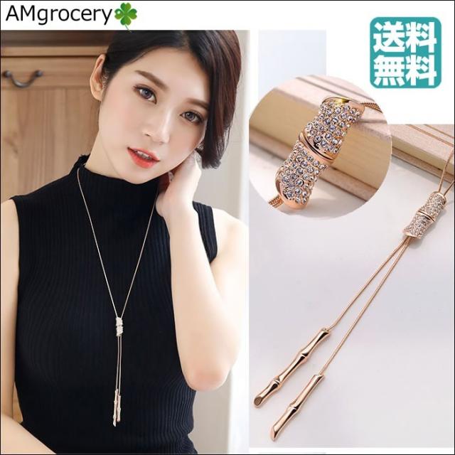 ネックレス アクセサリー 春夏 父の日 プレゼント 2022 人気 送料無料 プレゼント 竹筒 チャーム ピンクゴールド モチーフ ラインストーン ペンダント
