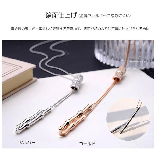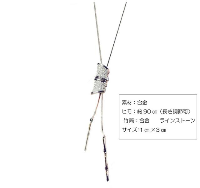 【送料無料】竹筒 ゴールド シルバー モチーフ ラインストーン ネックレス アクセサリー プレゼント ジュエリー ペンダント スライドネックレス | ||||||||