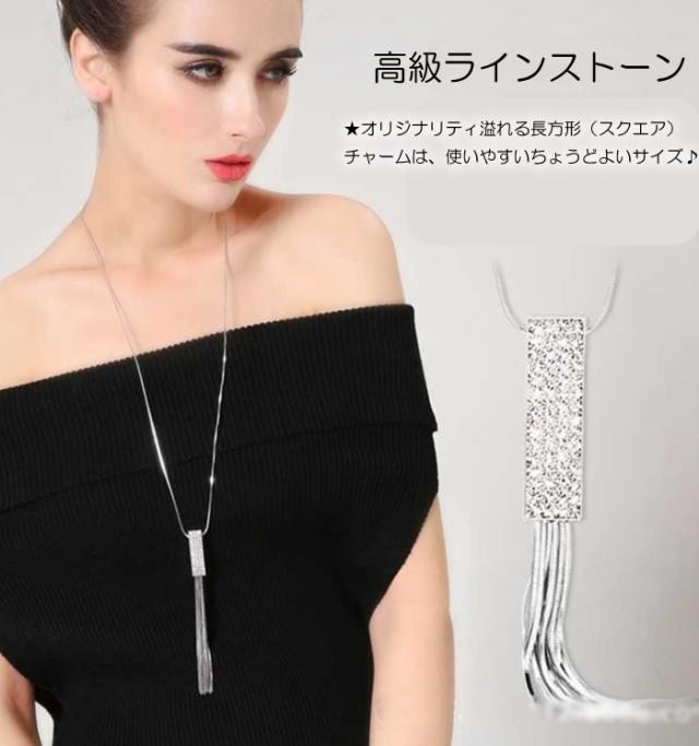 ネックレス スクエア 長方形 春夏 父の日 プレゼント 2022 人気 送料無料 モチーフ ラインストーン アクセサリー プレゼント ジュエリー ペンダント