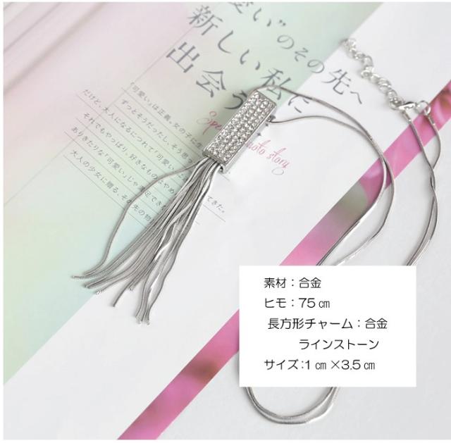 【送料無料】スクエア 長方形 モチーフ シルバー ラインストーン ネックレス アクセサリー プレゼント ジュエリー ペンダント スライドネックレス | ||||||||