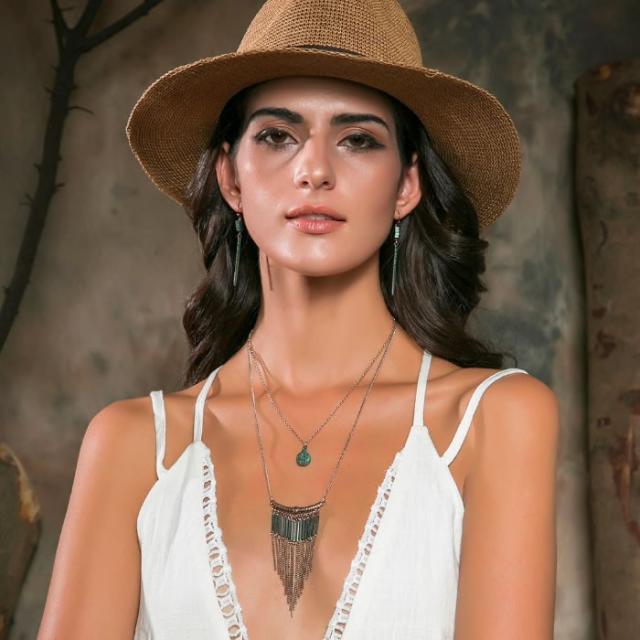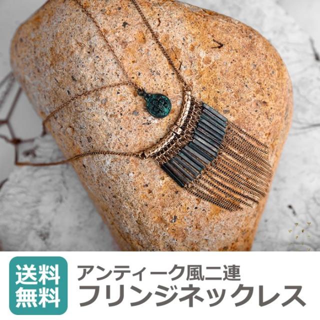 ネックレス 二連ネックレス 春夏 父の日 プレゼント 2022 人気 送料無料 金古美 フリンジ アンティーク風 コイン 天然石 エキゾチック プレゼント 贈り物