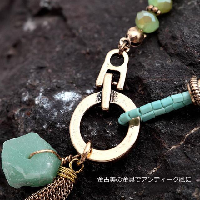 【送料無料】天然石 フリンジ 金古美 アンティーク風 ロングネックレス エキゾチック オリエンタル プレゼント 贈り物 レディース | ||||||||