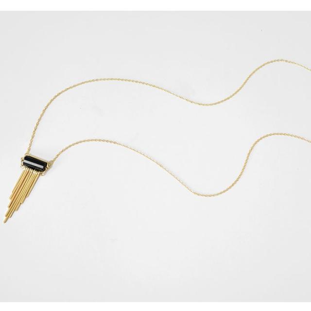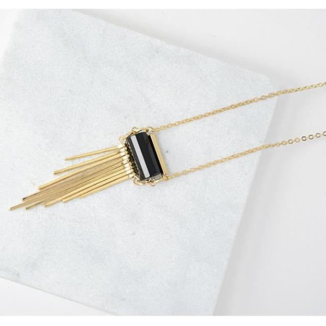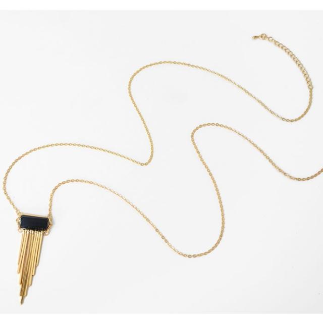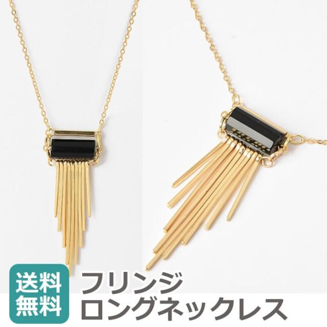 【送料無料】天然石 ブラック フリンジ ゴールド アンティーク風 ロングネックレス エキゾチック オリエンタル プレゼント 贈り物 レディース | ||||||||