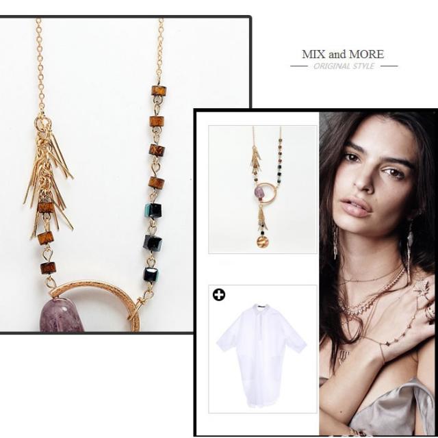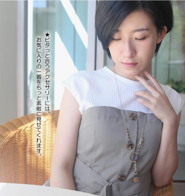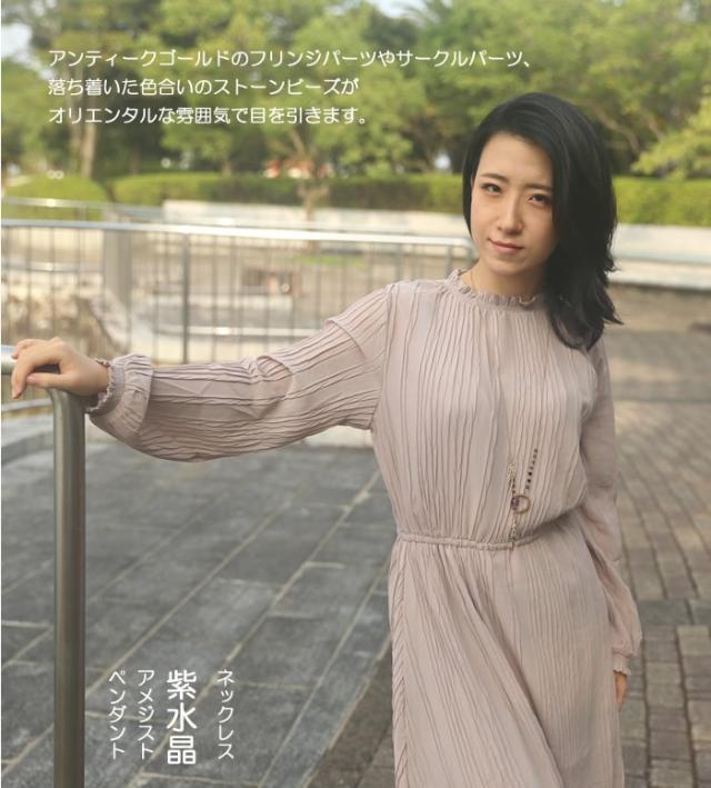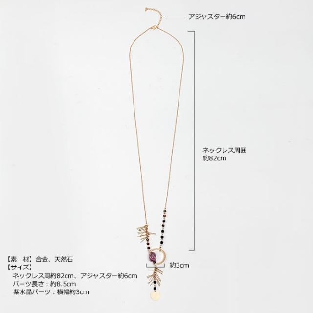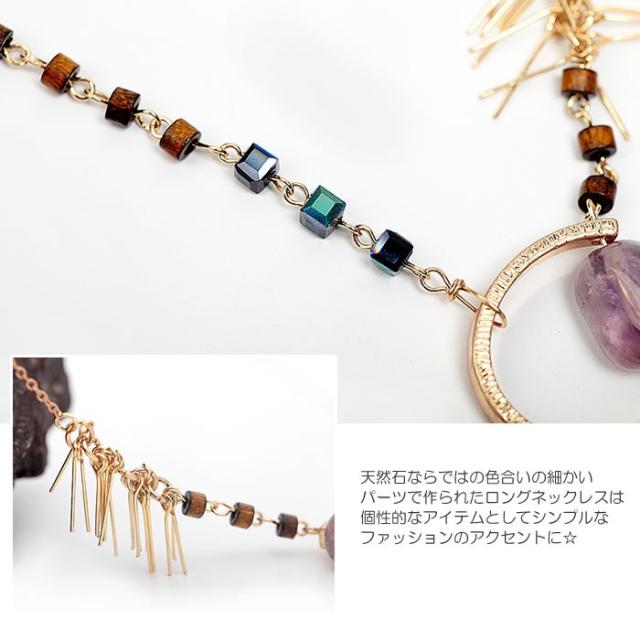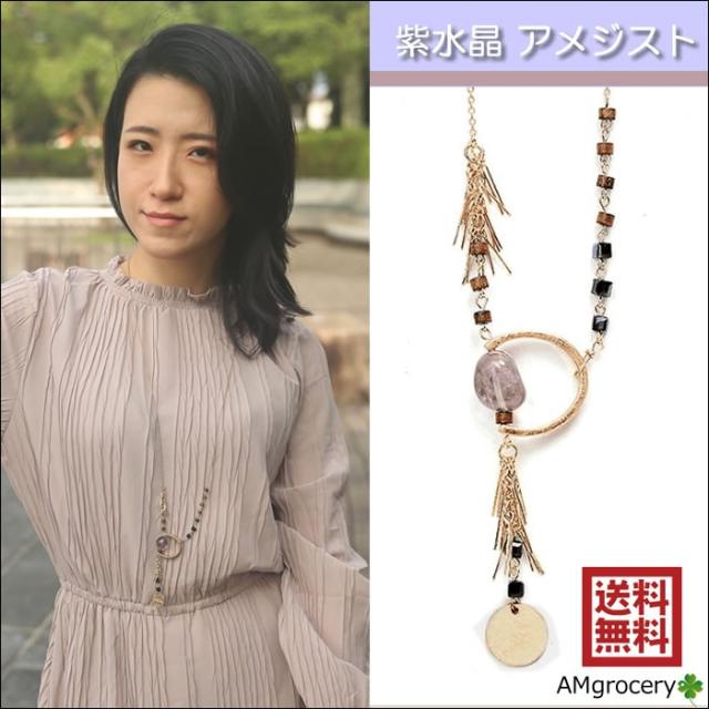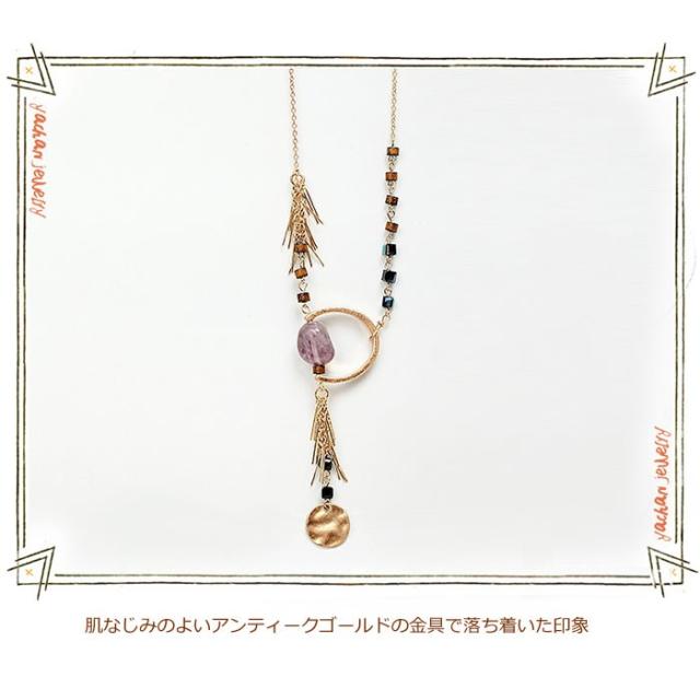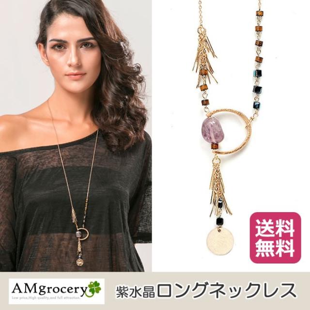 ネックレス 紫水晶 アメジスト 天然石 ペンダント ロングネックレス フリンジ アンティークゴールド アジアン ボヘミアン 送料無料