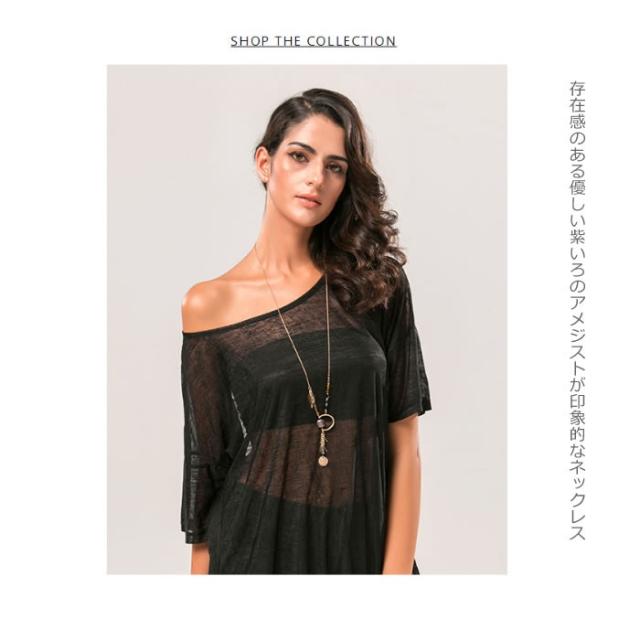 ネックレス 紫水晶 アメジスト 天然石 ペンダント ロングネックレス フリンジ アンティークゴールド アジアン ボヘミアン 送料無料 新春セール プレゼント 2022