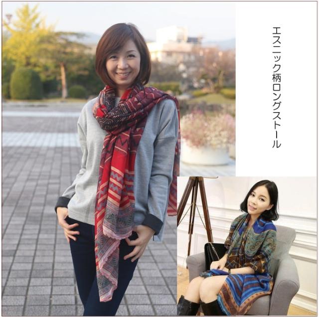 キレイ系の配色で女子力UP★エスニック柄ロングストール 全2色 | ||||||||