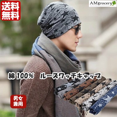 綿100%/優しく柔らかい被り心地のルーズなワッチキャップ◆ストレッチ ユニセックス 男女兼用 | ||||||||||