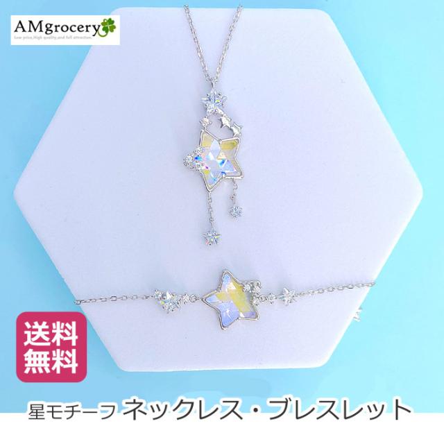 ネックレス ブレスレット レディース アクセサリー 星 スター 月 三日月 ジルコン 揺れる ペンダント 送料無料