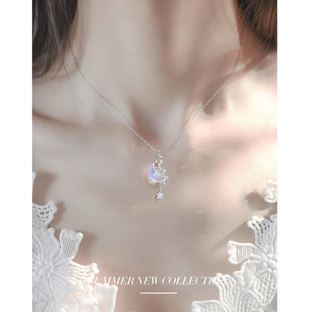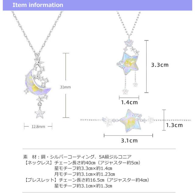 | ネックレス ブレスレット レディース アクセサリー 星 スター 月 三日月 ジルコン 揺れるペンダント | ||||