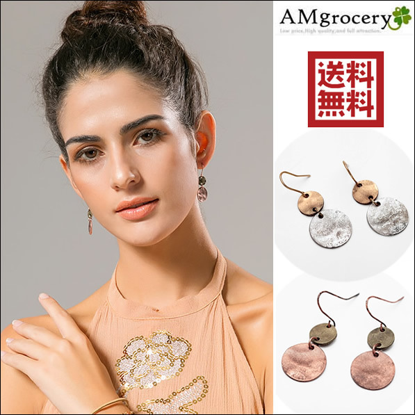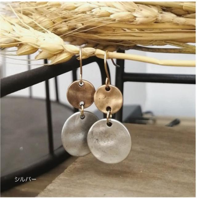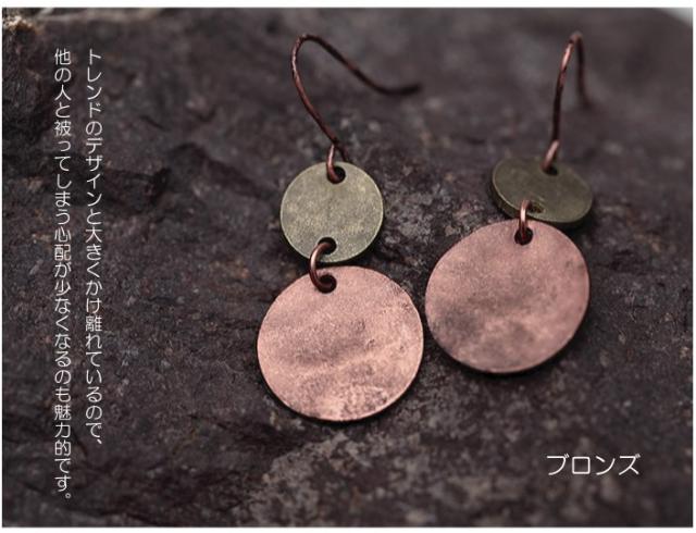 ピアス アンティーク調 アンティーク 父の日 プレゼント 2022 二連ピアス 古美 秋柄 サークルピアス シンプル ブロンズ シルバー アクセサリー