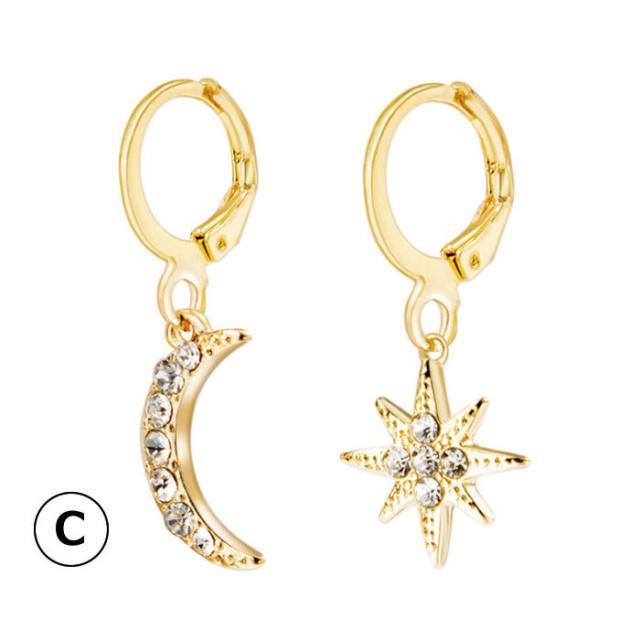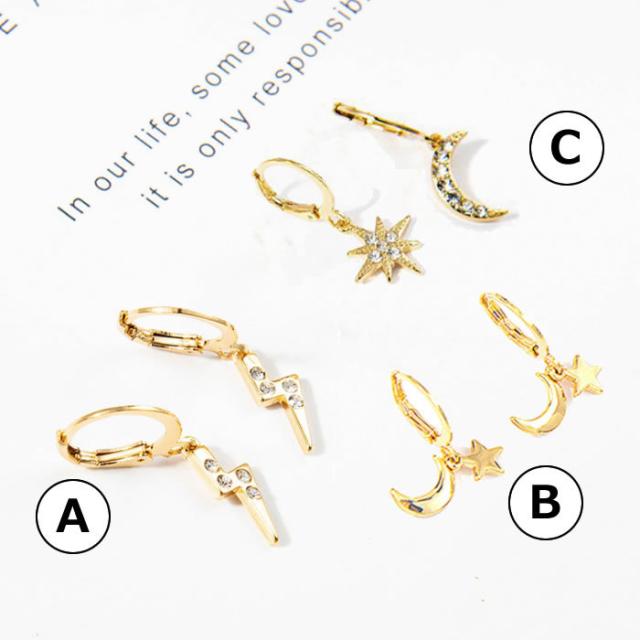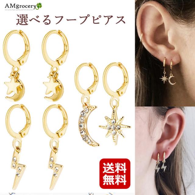 ピアス 月 星 稲妻 太陽 父の日 プレゼント 2022 ラインストーン ゴールド アクセサリー アシメデザイン オシャレ フープピアス 選べる 送料無料