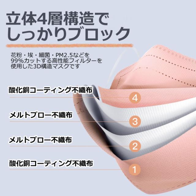 大人 子供 血色カラー 酸化銅マスク 高性能 フィルター マスク 個別包装 不織布 立体型 4層構造 男女兼用 快適 | ||||