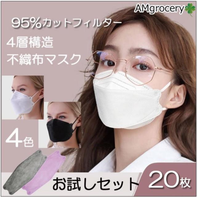 大人用マスク 95%カット 密封性がよい4層マスク 20枚セット 使い捨て 不織布 韓国 男女兼用 ウイルス対策 花粉 風邪 3D 立体マスク