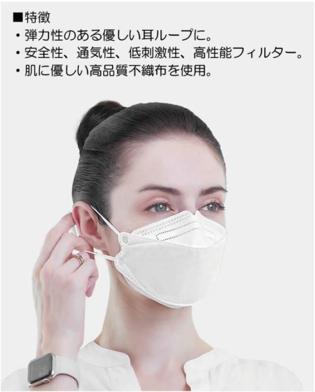 立体設計で口元にゆとりを持たせ、息苦しさを抑制。耳紐はソフトな素材で耳が痛くなりにくい仕様です。