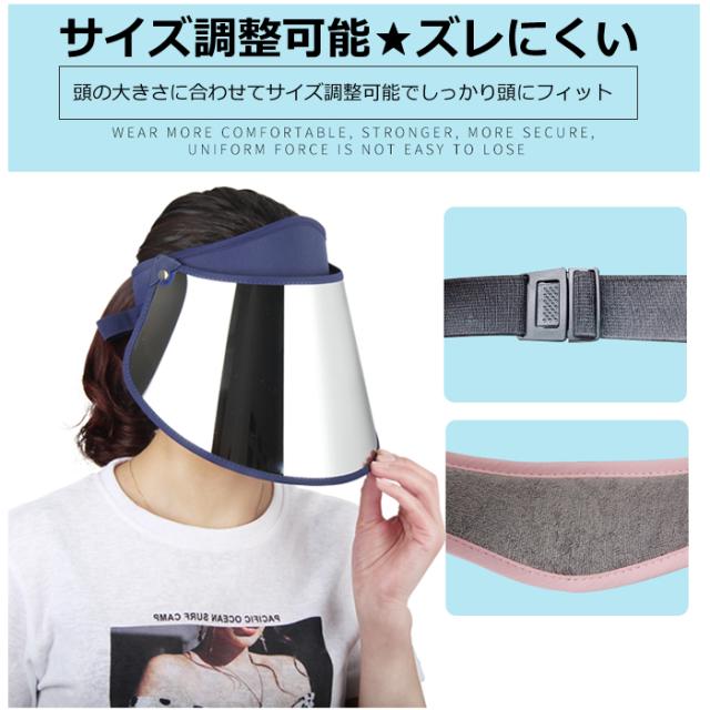 【UPF50&UVカット率99%】プロ級UVカット製品、肌を傷める紫外線の99%以上(UPF50)をカット!紫外線からお肌を守り、ちょっと外に出る時にノーメイクでも安心!【改良された超ワイドタイプ】大きくて湾曲の少ないつばなので、耳まで隠れてる、蒸れない、通気性が良い。大きくて湾曲の少ないつばなので、メガネを掛けてもかぶれます。【視界良好の両用バイザー】シールドは明るすぎず、濃すぎずでちょうど良い程度で、まぶしい日差しや曇りの日でも先方をよくみられ、安全で頼りになれるいい仲間です。【自転車使用でも飛ばされない】後ろにあるアジャスター付きストラップで、頭の大きさに合わせてサイズ調整可能。強風や突風であっても、しっかり頭にフィットします!【バイザーについて】バンド生地:ポリエステル