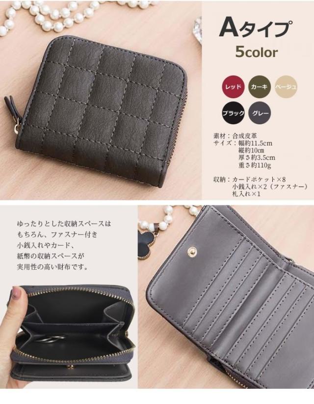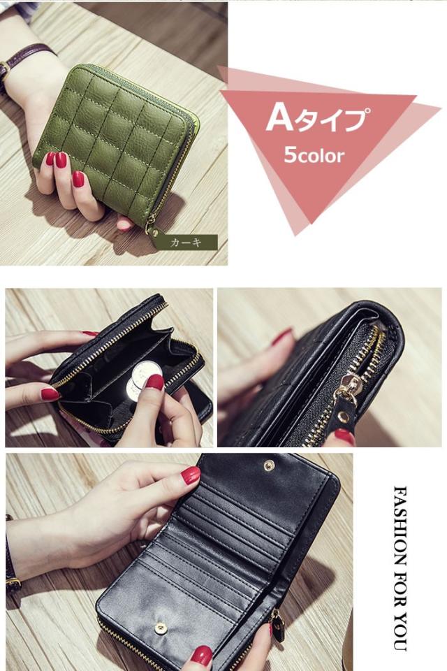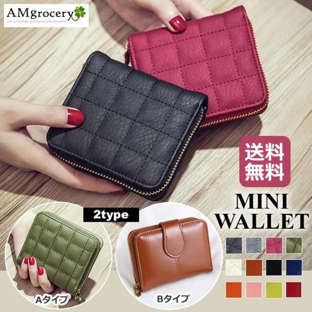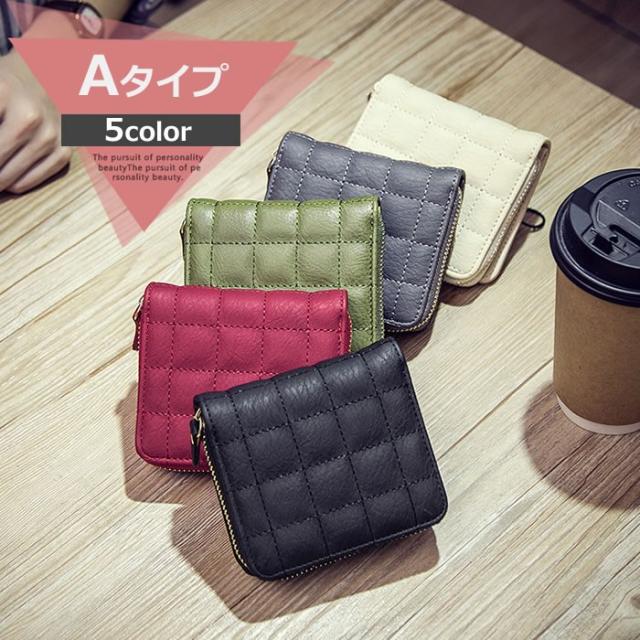財布 二つ折り ミニ財布 ミニウォレット レディース PUレザー コインケース キルティング キルト デザイン チェック 縫い目模様 ステッチ 選べる財布 カラー豊富 送料無料