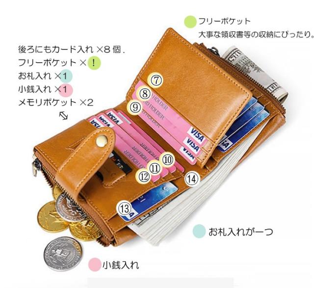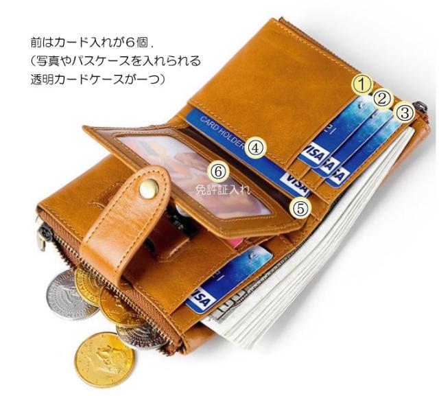 二つ折り財布 メンズ チ カードがたくさん入る 大容量 多機能