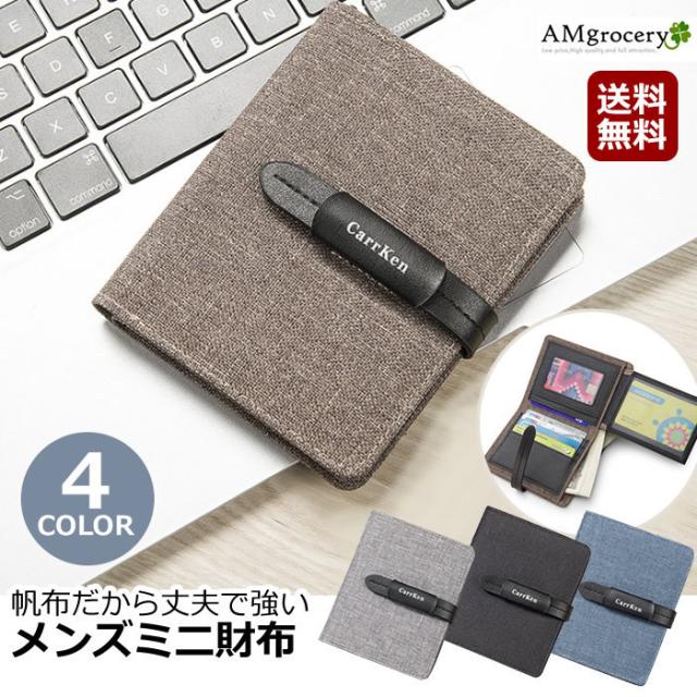 メンズ 財布 ミニ財布 二つ折り財布 軽量 帆布 紳士財布 札入れ コンパクト シンプル カード 収納 送料無料