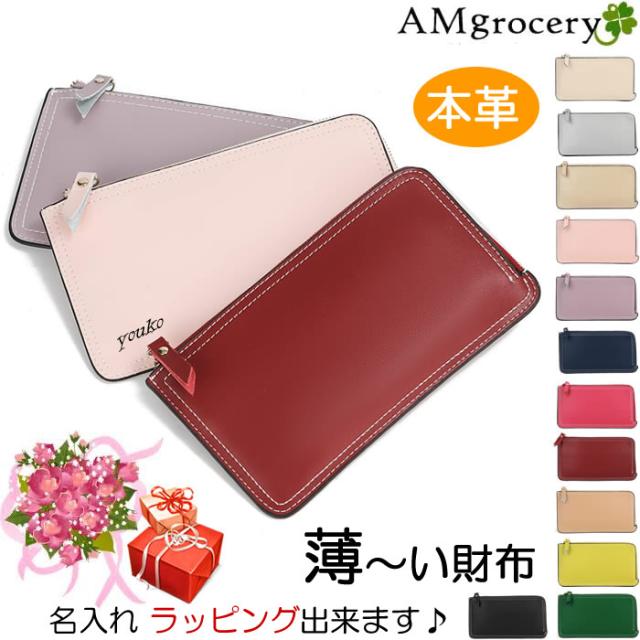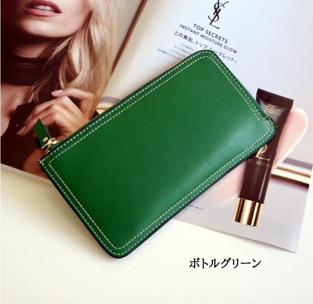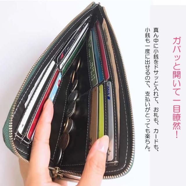長財布 レディース 本革 母の日 春財布 プレゼント 薄型 L字ファスナー 薄い 緑 縁 みどり プチプラ ギフト 開運 人気 送料無料 大容量 軽量 おしゃれ