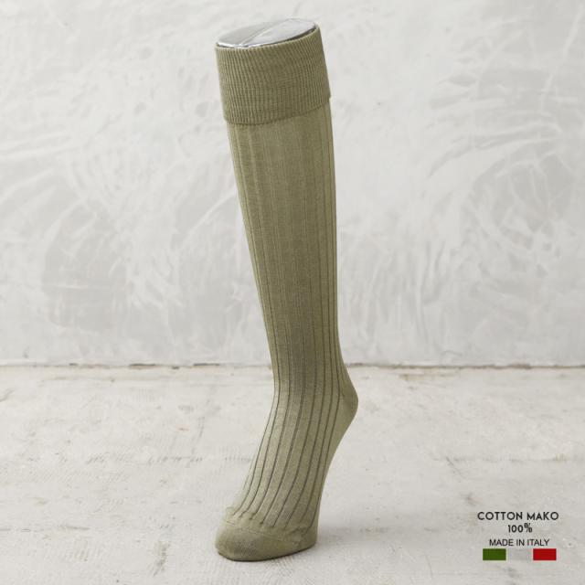 本格的な長丈のライトウェイトのコットンソックスです。綿の中でも最高級、シーアイランドコットンに次ぐグレードのシルクのような光沢とさらっとした肌触りが特徴のマココットンを使用したイタリア製の靴下です。希少性が高く、通常のコットンの100倍と言われるほどの吸湿性・通気性に富んだ素材で、通年快適に履くことができます。履き口にもしっかりとしたリブが聞いているので、落ちてきづらく使いやすい一足です。肌触りが良く丁寧な縫製で仕上げられており、デイリーに活躍してくれるアイテムです。