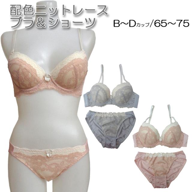 ブラジャー&ショーツ ブラショーツ ブラジャー ブラ ショーツ セット ブラセット バイカラー レース B65 B70 B75 C65 C70 C75 D65 D70 D75 ナイトウエア レディースインナー インナー 下着 女性 レディース メール便送料無料