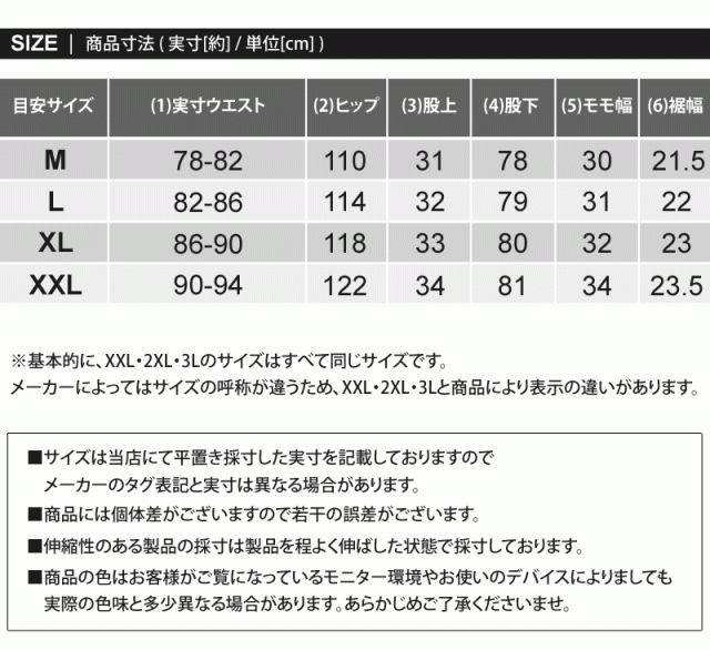実寸ウエスト/ヒップ/股上/股下/モモ幅/裾幅
