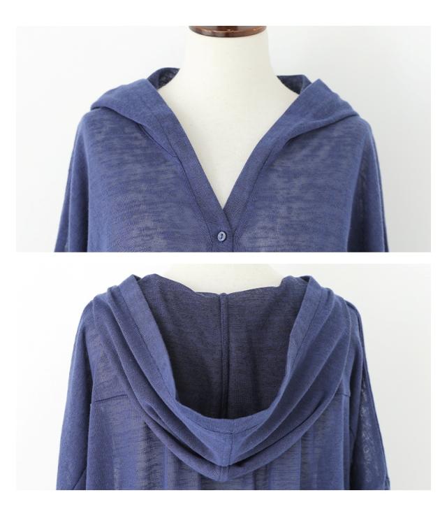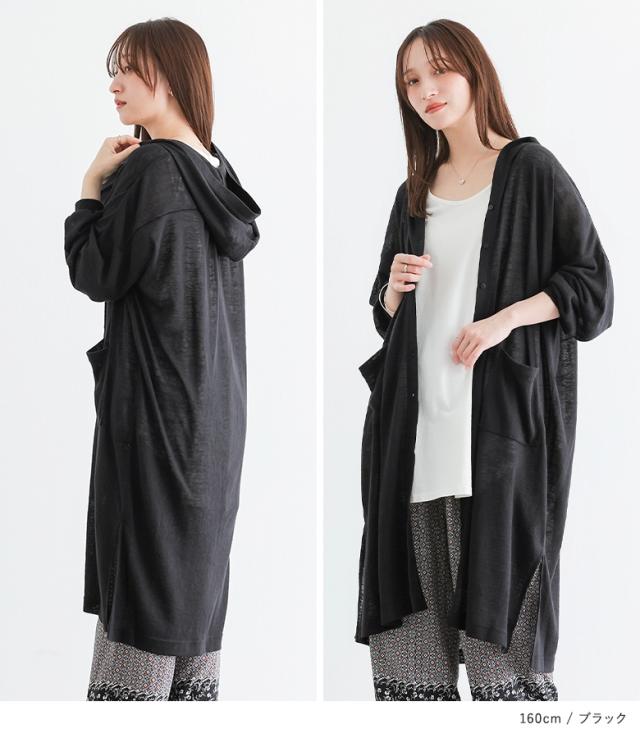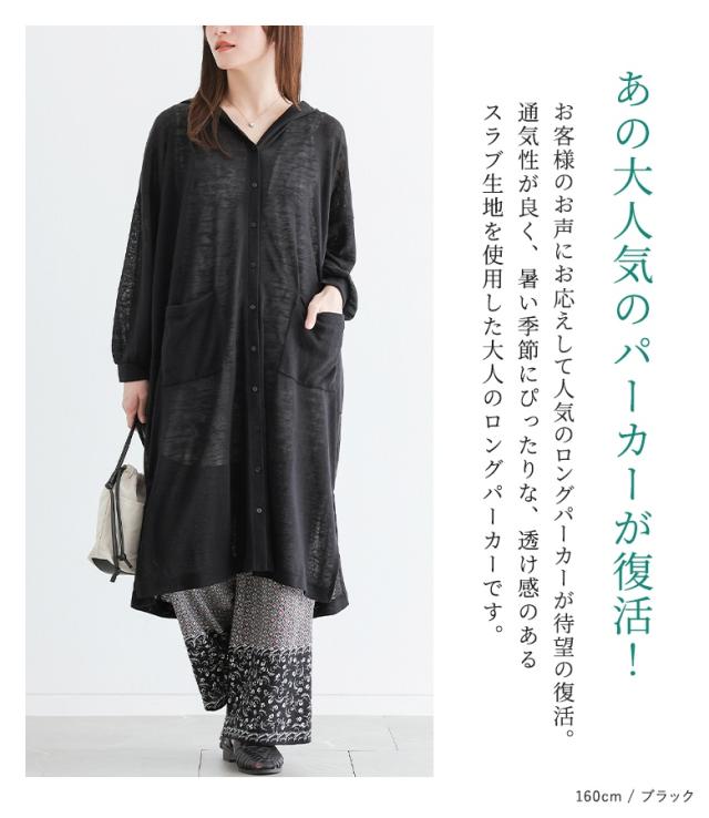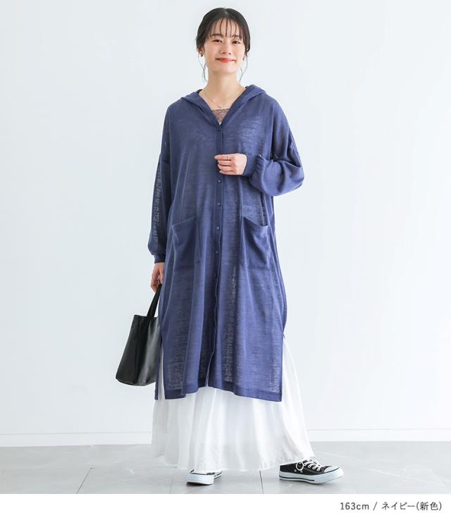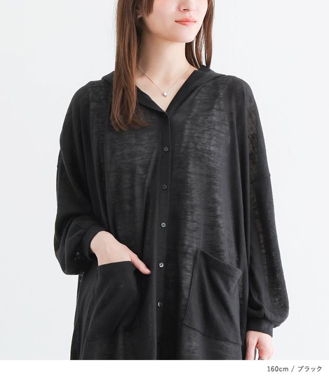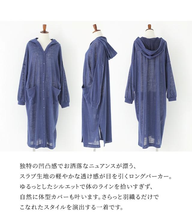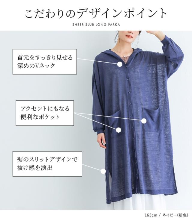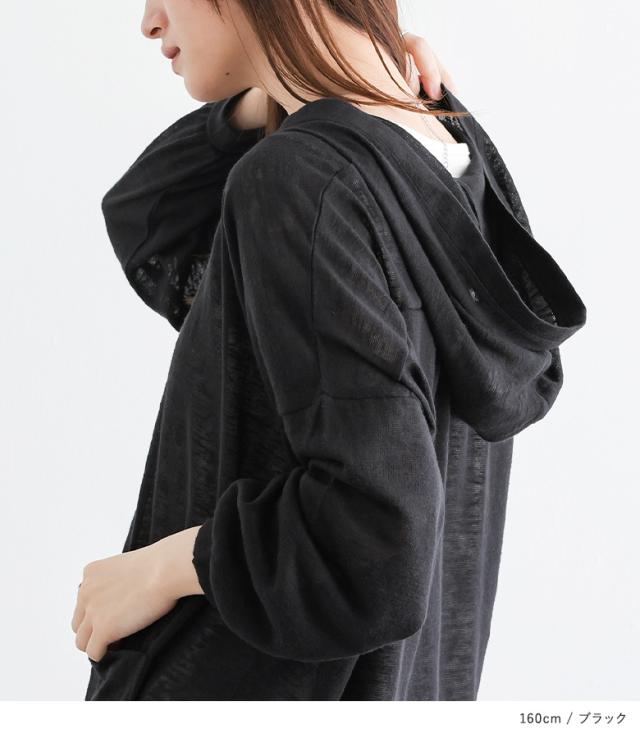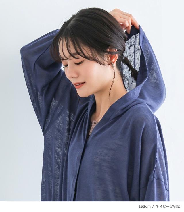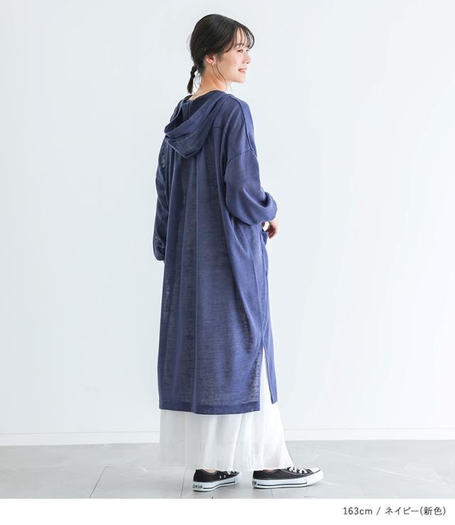 【新色登場】『シアースラブロングパーカー』 【メール便不可】【20】[カーディガン レディース 春 夏 トップス パーカー 長袖 ロング丈 Vネック スラブニット サマーニット 透け感 シアー スリット 体型カバー 着痩せ オシャレウォーカー]