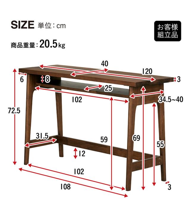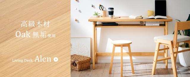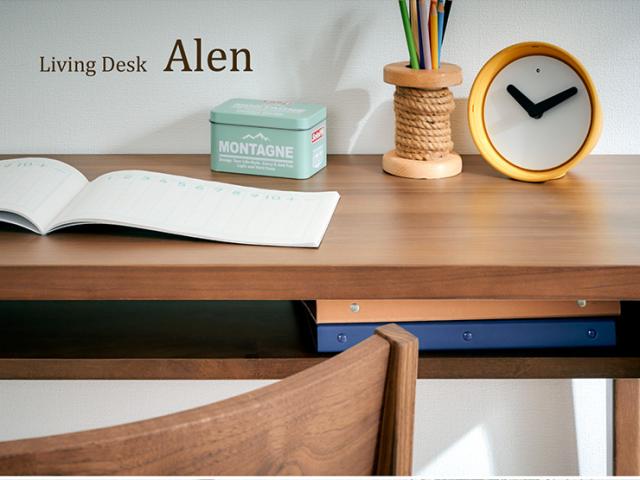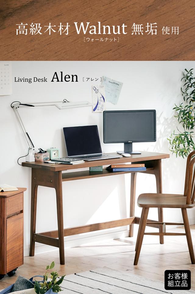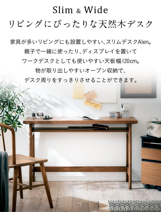 リビングデスク 幅120cm Alen(アレン) ウォールナット テーブル デスク ワークデスク カウンター バーテーブル シンプル スリム 木製 無垢材 ナチュラル