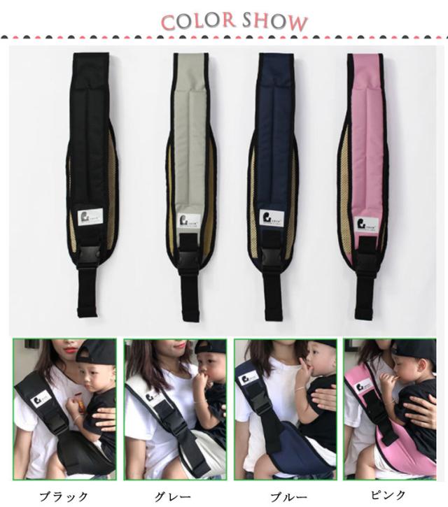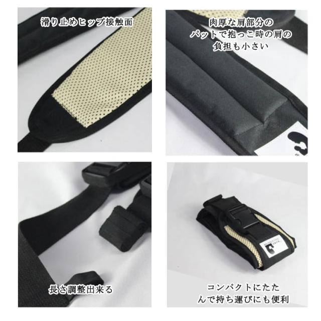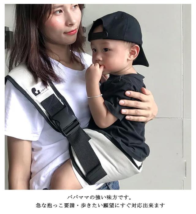 | 片手での抱っこをサポートします。 急な抱っこ要請・歩きたい願望にすぐ対応出来ます。 折りたためてとてもコンパクトなので持ち運びにとても便利。 バックに入れても気にならない重さです。 パパママの強い味方です。 ワイドな座面で抱っこ時の安定感もGood。 肩の部分も幅広くなっており、重量がかかるのを分散に肩への負担を緩和します。 いつでもすぐに使う事ができ、抱っこによるママへの負担を軽減します。 赤ちゃんもママに密着する事で安心感がうまれ、眠りを誘ったりご機嫌がよくなったり、赤ちゃんのとのスキンシップにもとても役立つアイテムです♪ | |