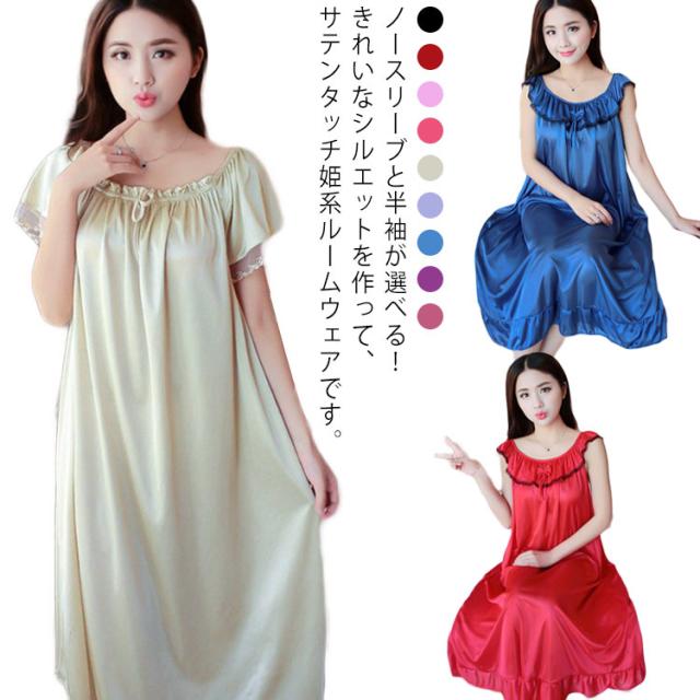サテンタッチ ロング丈 レディースランジェリー フレア ワンピース 冷感 送料無料 スリップ ナイトウェア パジャマ 部屋着 ゆったり 可愛い かわいい セクシー 姫 妊婦 マタニティー 大きいサイズ L XL 2XL 3XL