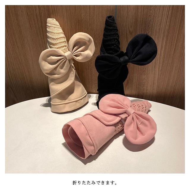 | 通気性の良い麦わらハット 折りたたみできます。 大きめリボンがデザインポイントです。 | |