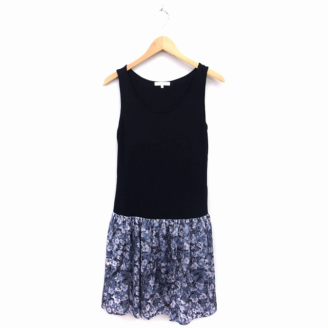 【中古】コムサマチュア Comme ca Mature ロング ワンピース 切替 無地 花柄 ノースリーブ 9 ブラック 黒 グレー 灰