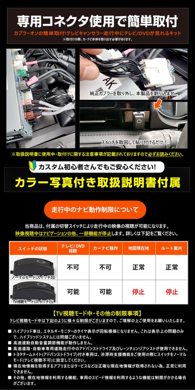 [対象商品10%OFFクーポン発行中]★90系 ヴォクシー ノア ディスプレイオーディオ搭載車 専用 テレビキャンセラー TVキット / + カーナビ保護フィルム 1枚 セット90 VOXY NOAH TOYOTA トヨタ [2]