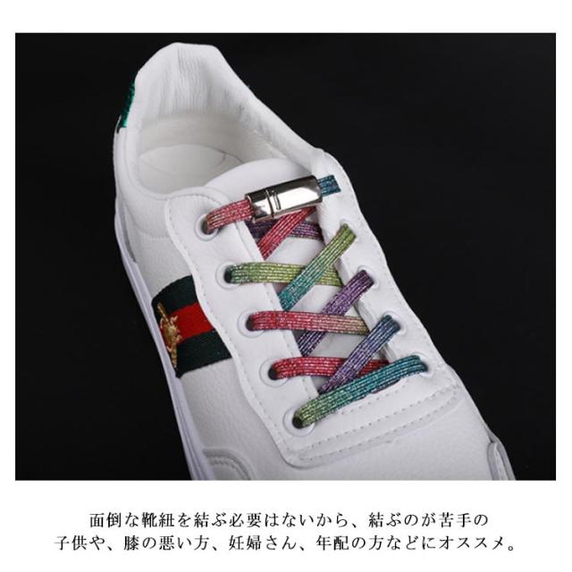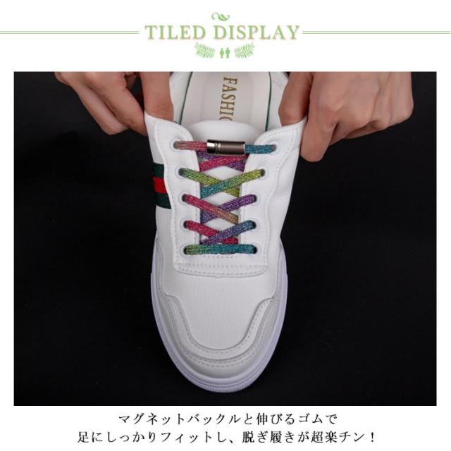 送料無料 ゴム 靴紐 キラキラ ラメ入り 結ばない 靴ひも 伸縮 マグネットバックル 留め具 スニーカー レインボー スポーツ 作業靴 レディース メンズ 子供 妊婦 高齢者