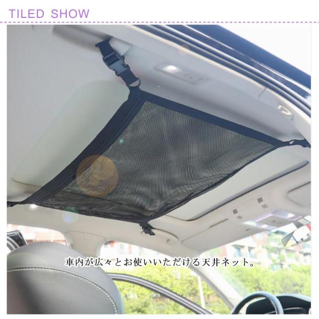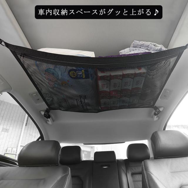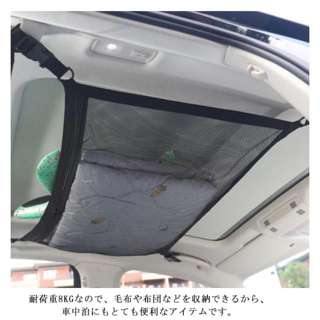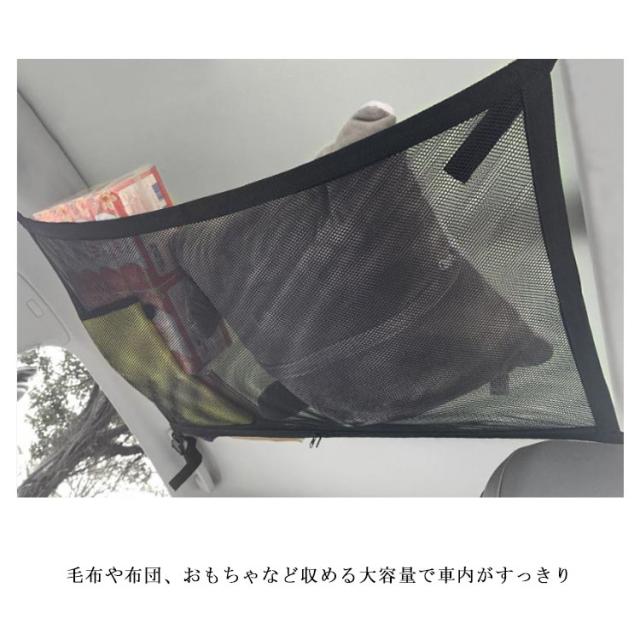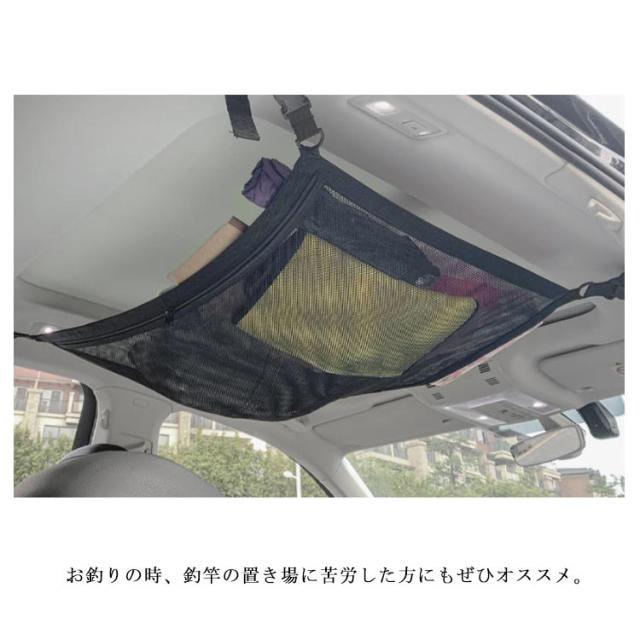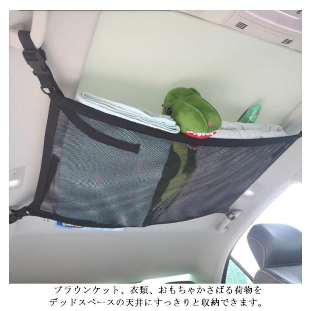 | 車内収納スペースがグッと上がる♪ 車内が広々とお使いいただける天井ネット。 ブラウンケット、衣類、おもちゃかさばる荷物をデッドスペースの天井にすっきりと収納できます。 伸びにくい素材で垂れ下がることなく、視野をしっかり確保し、安心して運転できます。 ネット自体がファスナー付きポケットとなっており、荷物の脱落を防ぐことができますので安心◎ お釣りの時、釣竿の置き場に苦労した方にもぜひオススメ。 耐荷重8KGなので、毛布や布団などを収納できるから、車中泊にもとても便利なアイテムです。 | |