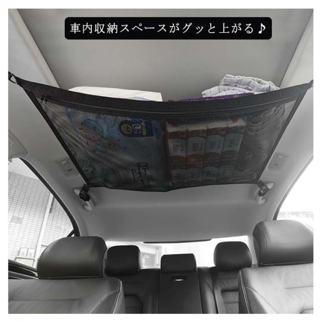 送料無料 車 天井ネット ヘッドスペースネット 天井収納 ルーフネット メッシュ ポケット 車用収納グッズ 車中泊 ジッパー付 カー用品 ドライブ 荷物収納 毛布 ブラウンケット おもちゃ 衣類