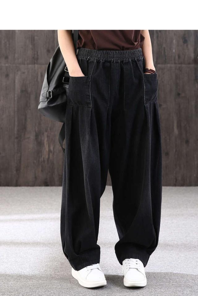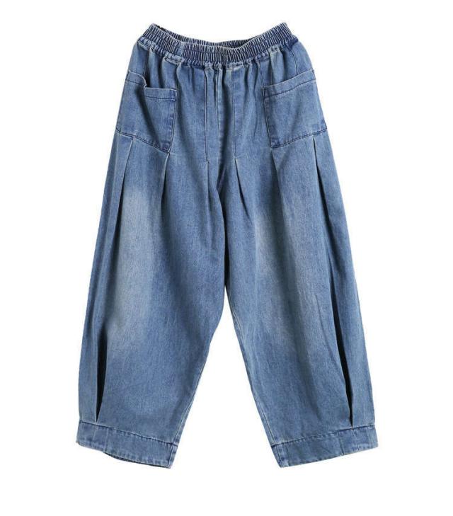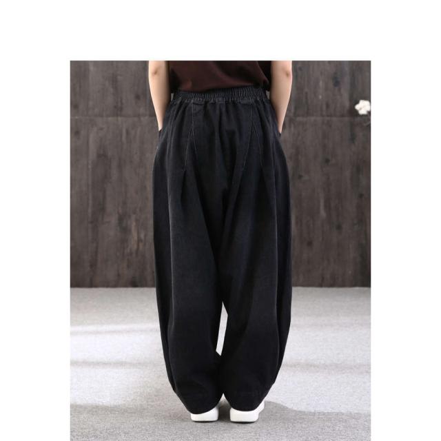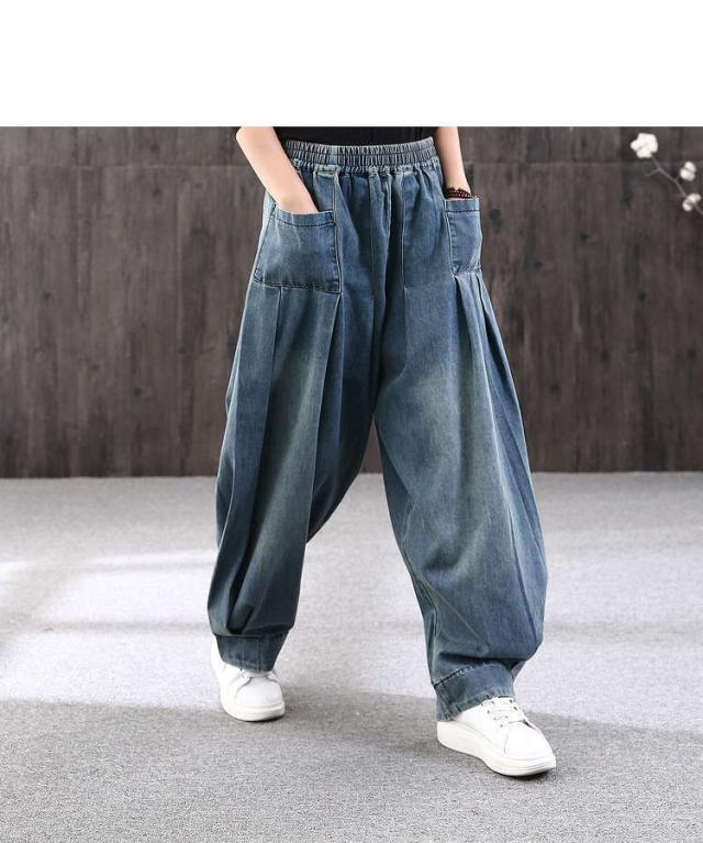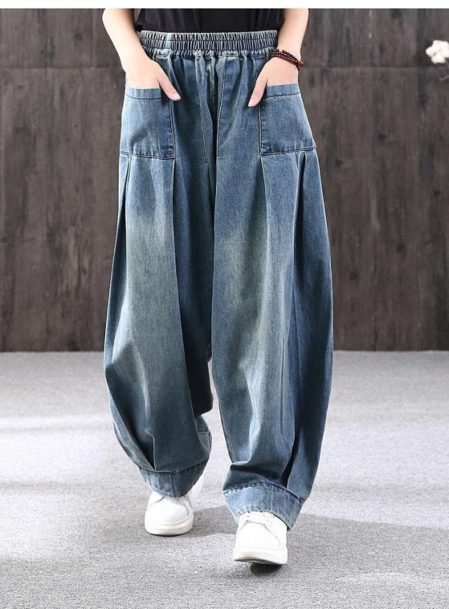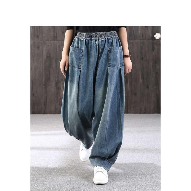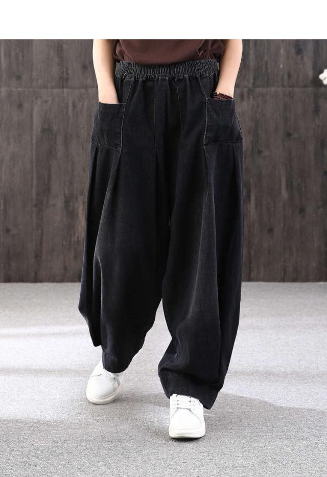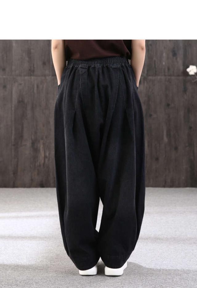 ロング丈 デニムパンツサルエルパンツ バルーンレディース パンツバルーンパンツ デニムゆったり ウェストゴムカジュアル ハレムパンツ